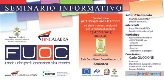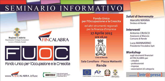FUOC > Continua il roadshow di FINCALABRA > Lunedi 27 semnari ad Amantea e Rendei