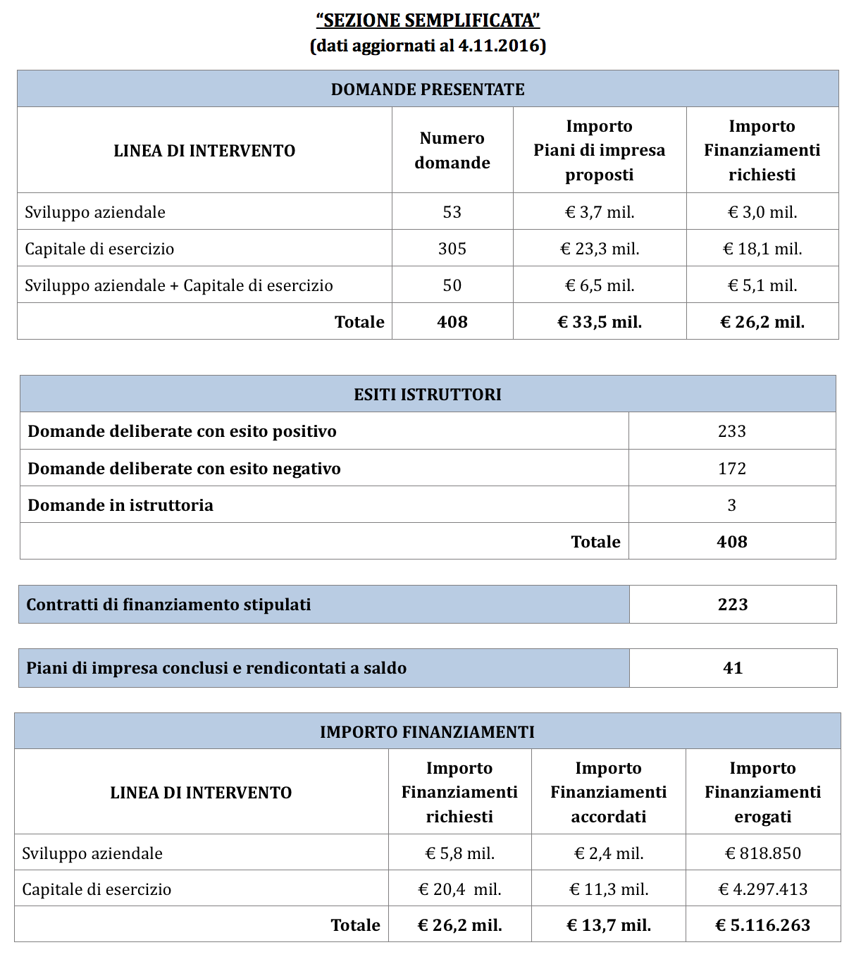 - Sezione Semplificata: Il Comitato ha proceduto all’esame di n. 40 domande di finanziamento istruite dal Soggetto Gestore, Fincalabra S.p.A., e deliberato la concessione di finanziamenti per un importo complessivo pari a circa € 1,1 milioni in favore di n. 20 imprese positivamente valutate;