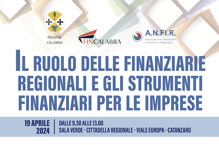 “Il ruolo delle finanziarie regionali e gli strumenti finanziari per le imprese”. Questo il titolo dell’incontro promosso da Fincalabra S.p.a., che si terrà venerdì 19 aprile, a partire dalle 9.30, nella “sala verde” della Cittadella regionale di Germaneto. Un evento finalizzato a rafforzare la collaborazione e lo scambio di buone pratiche tra le finanziarie italiane, con lo scopo di favorire e sostenere, tutti insieme, la crescita e la valorizzazione delle piccole e medie imprese che operano sul territorio nazionale. Prima iniziativa del genere che si svolgerà in Calabria, anche a dimostrazione dell’attenzione mostrata dal Governo regionale sul tema del sostengo alle aziende.